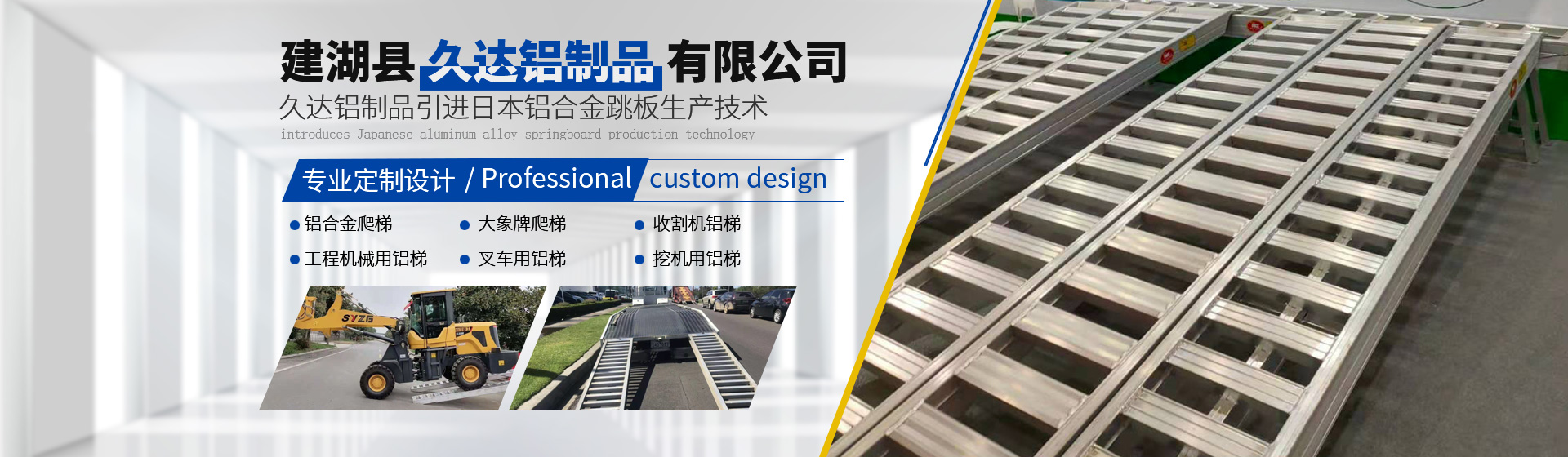 廣泛應用于聯(lián)合收割機、拖拉機、插秧機、挖掘機等機械建湖縣久達鋁制品有限公司引進日本鋁合金跳板生產(chǎn)技術(shù),專業(yè)生產(chǎn)高強度鋁合金跳板,廣泛應用于聯(lián)合收割機、拖拉機、插秧機、挖掘機等機械。 我公司于2012年引進日本全鋁合金跳板生產(chǎn)技術(shù)。經(jīng)過四年的學習、探索、生產(chǎn)、銷售,現(xiàn)已全面消化吸收鋁合金跳板技術(shù)、總結(jié)出一套成熟的生產(chǎn)、使用、售后服務經(jīng)驗;為提高產(chǎn)品質(zhì)量,加大設備投入,購買歐洲進口的鋁合金焊接設備和切割設備,保證產(chǎn)品的焊接強度和精度;結(jié)合中國收割機作業(yè)量大、作業(yè)條件復雜、中國收割機更重等特點,生產(chǎn)出更適合中國國情的高強度鋁合金跳板,承載力更強,抗疲勞效果更好,使用周期更長,同等使用條件下是市場上仿制產(chǎn)品使用壽命的1.5倍以上。大象牌鋁梯成為中國鋁梯行業(yè)馳名品牌。